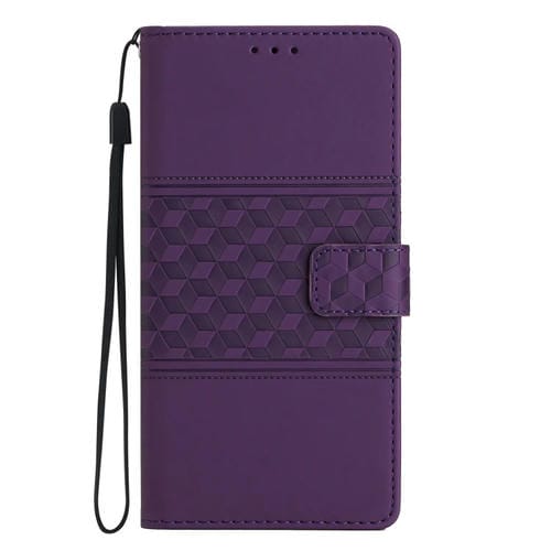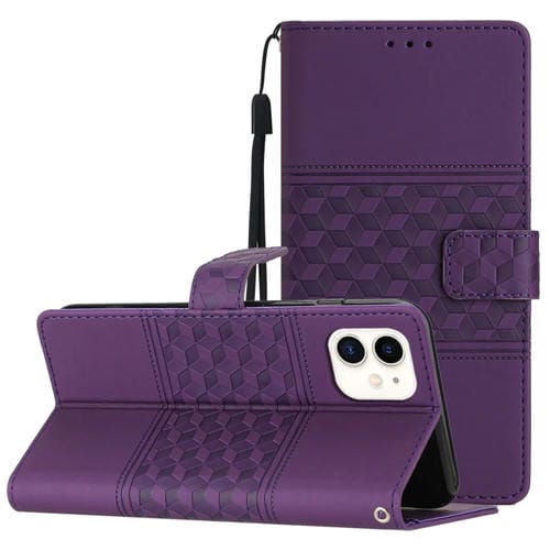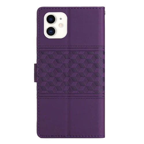 Caja de Teléfono iPhone 12 Mini Cuero Tacto Piel En Relieve con Cordón (Púrpura)