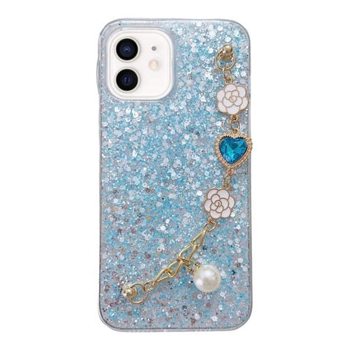 Caja de teléfono TPU Epoxi para iPhone 12 Mini con cadena de gemas y Lentejuelas estrelladas (Azul)