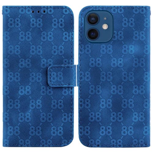 Estuche para Teléfono iPhone 12 Mini Cuero En Relieve Doble Forma de 8 (Azul)