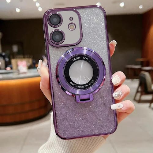 Estuche para teléfono iPhone 12 Mini Magsafe con brillo degradado y soporte galvanizado (Púrpura)