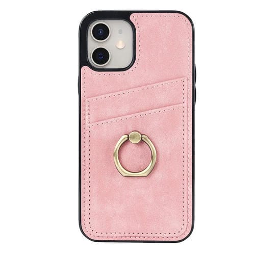 Funda para iPhone 12 Mini Cuero con Parche Vintage y Soporte para Anillo (Rosa)