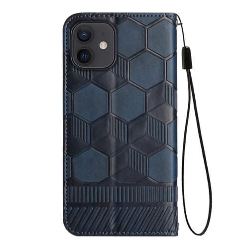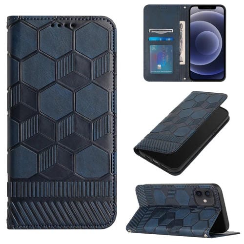 Funda de teléfono iPhone 12 Mini con tapa de cuero magnético y textura de fútbol (Azul Oscuro)