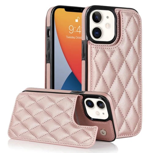 Funda de Teléfono iPhone 12 Mini Cuero Pu Rombal con Doble Hebilla (Oro Rosa)