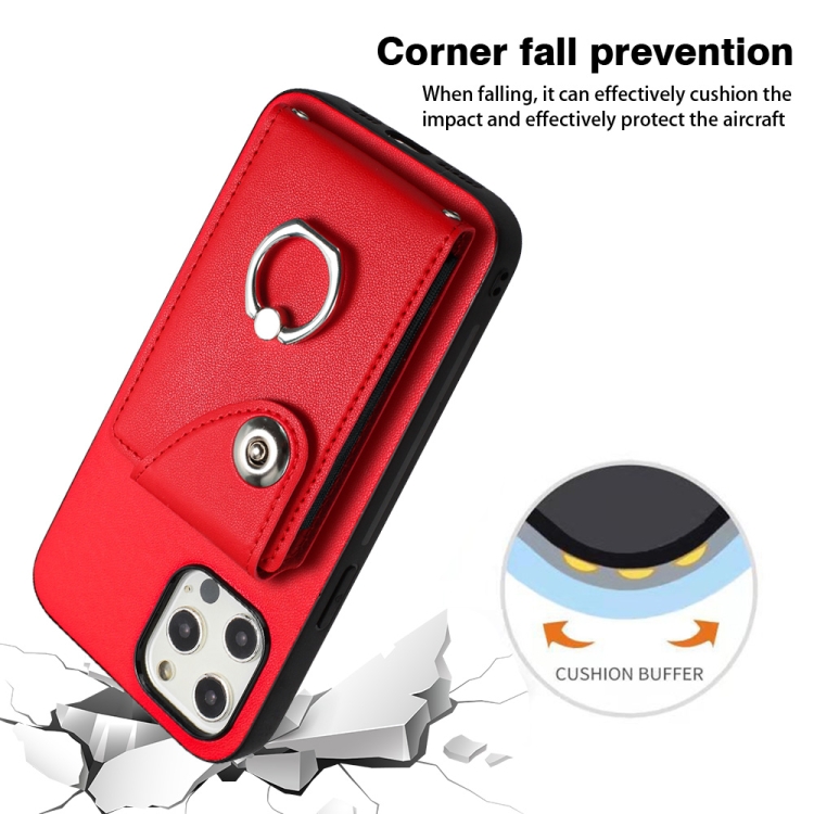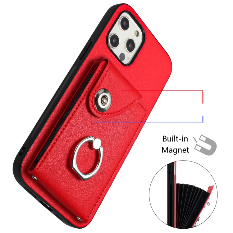 Funda para Teléfono iPhone 12 Mini con Soporte para Anillo y Bolsa para Tarjeta (Rojo)