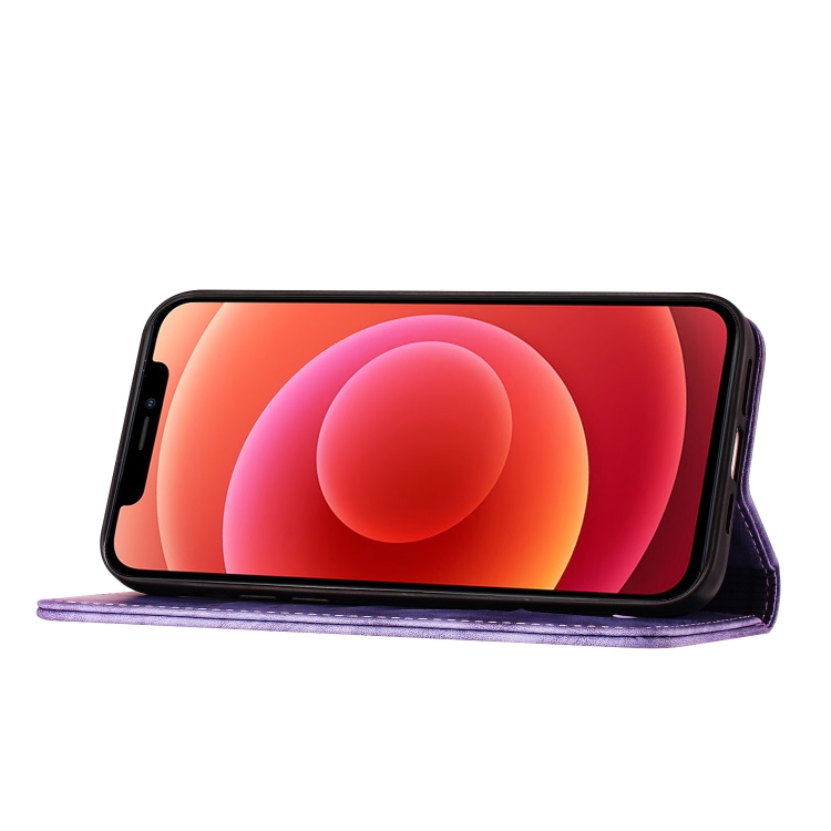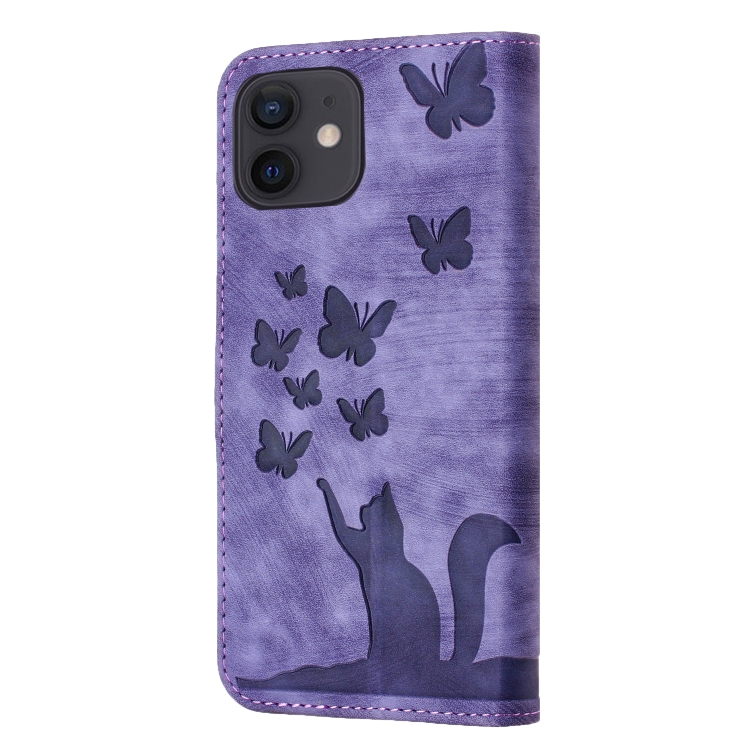 For iPhone 12 mini Butterfly Cat Pattern Flip Leather Phone Case (Purple)