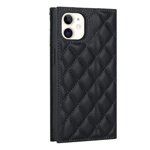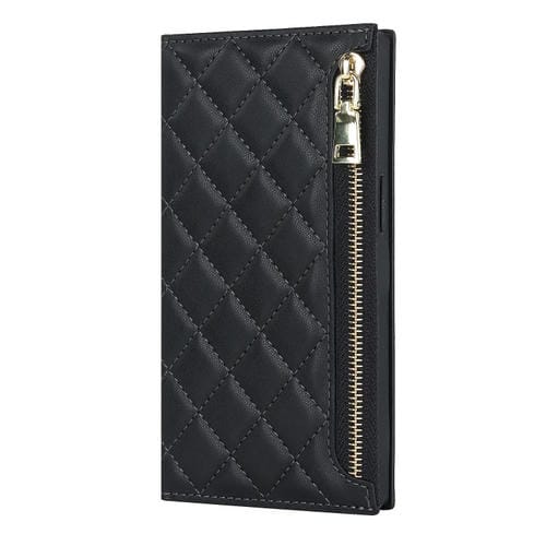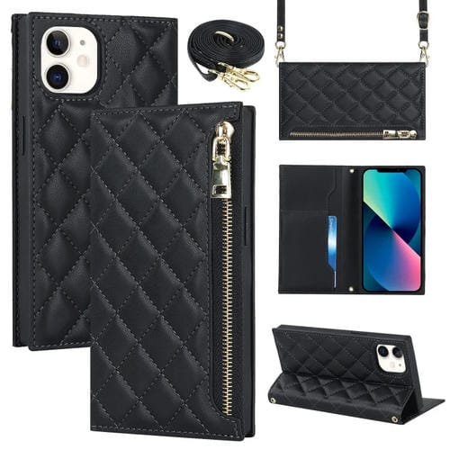 Funda de Cuero con Cremallera para iPhone 12 Mini Grid Texture Lanyard (Negro)
