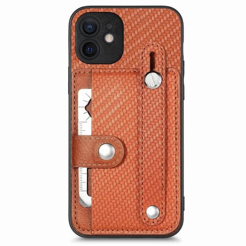 Funda para iPhone 12 Mini Muñequera Kickstand Tarjeta Monedero Contraportada con Herramienta Cuchillo (Marrón)