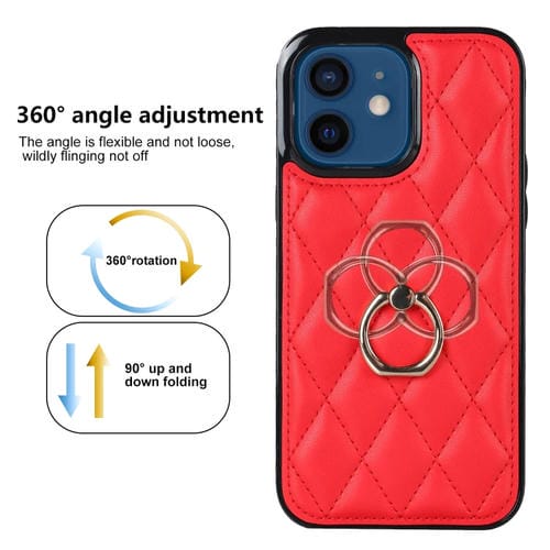 Funda para Teléfono iPhone 12 Mini Rhombic Pu Cuero con Soporte para Anillo (Rojo)