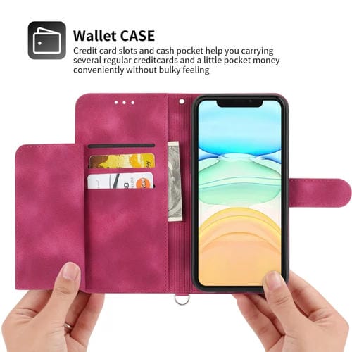 Funda de Cuero Skin-Feel Flowers para iPhone 12 Mini con Billetera en Relieve (Rojo Vino)