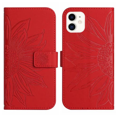 Funda de Cuero para iPhone 12 Mini Skin Feel Sun Flower Pattern Flip con Cordón (Rojo)