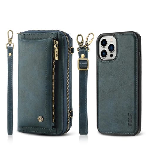 Funda de Cuero Crossbody para iPhone 12 Pro con Billetera y Cremallera Multifuncional (Verde)