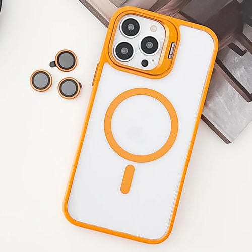 Estuche para Teléfono iPhone 12 Pro TPU Híbrido Acrílico Soporte Magsafe Película para Lentes (Naranja)