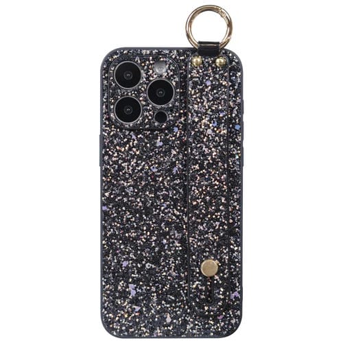Estuche para Teléfono iPhone 12 Pro con Soporte y Pulsera Flash Diamond (Flash Black)