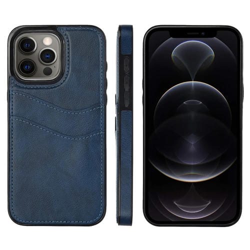 For iPhone 12 Pro Phone Case with Card Slots Litchi Skin Leather (Blue)