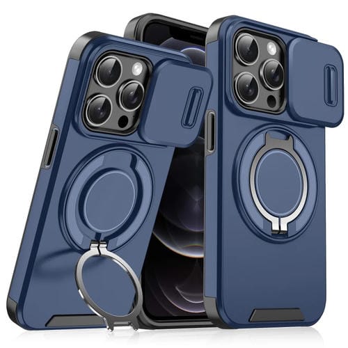 For iPhone 12 Pro Phone Case with Slide Cam Ring Holder (Blue)