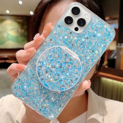 Funda para Teléfono TPU Epoxi iPhone 12 Pro Soporte Espejo Redondo Lentejuelas Estrelladas (Azul)