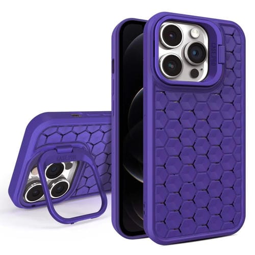 For iPhone 12 Pro Honeycomb Radiating Lens Holder Magnetic Phone Case(Purple)