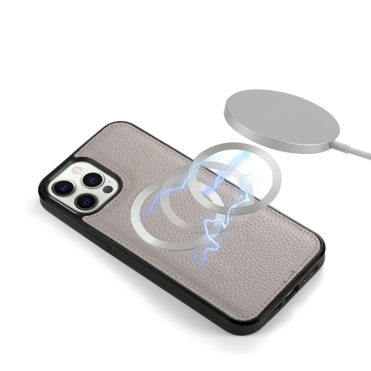 Funda para Teléfono iPhone 12 Pro Magsafe Crossbody con Billetera y Cremallera de Cuero Litchi (Gris)