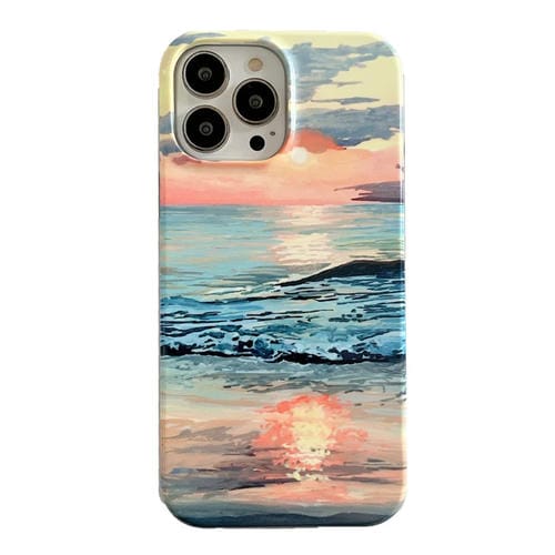 Estuche para teléfono iPhone 12 Pro Max 2 en 1 con patrón de mar y pintura al óleo desmontable (Amarillo Rosa)