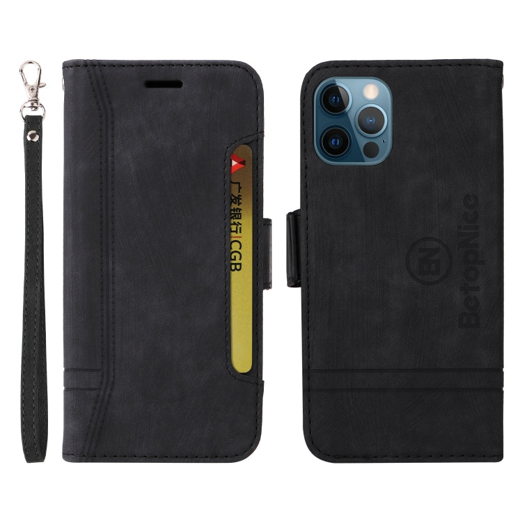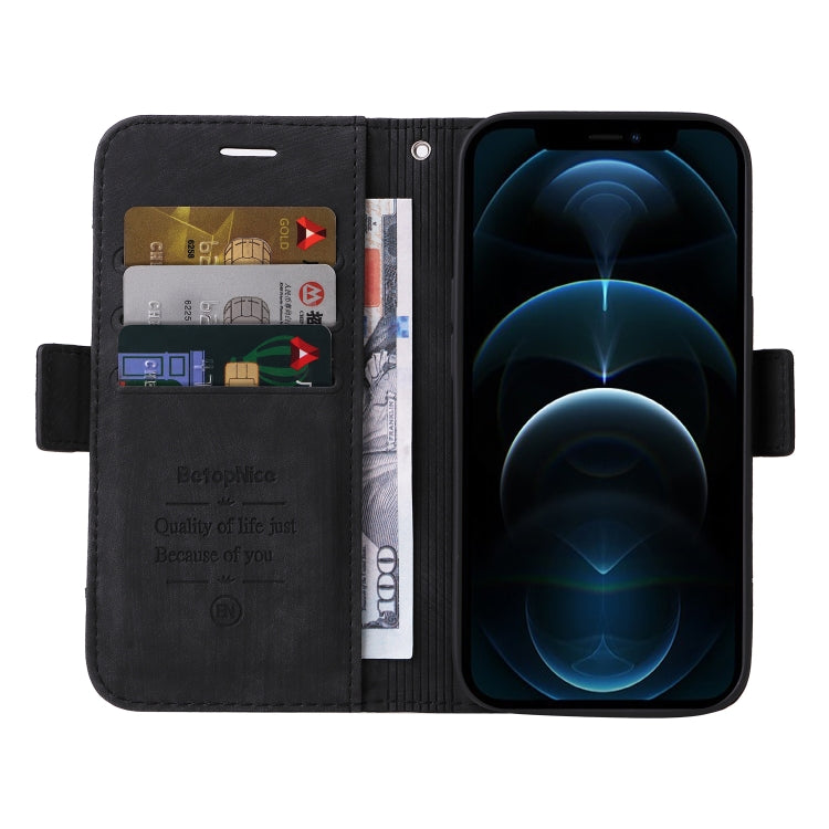 Estuche de Cuero Betopnice para iPhone 12 Pro Max con Hebilla de Doble Cara (Negro)