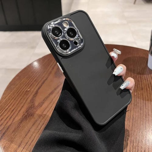 Caja de Teléfono para iPhone 12 Pro Max con Marco de Lente Galvanizada y Película de Lente (Negro)
