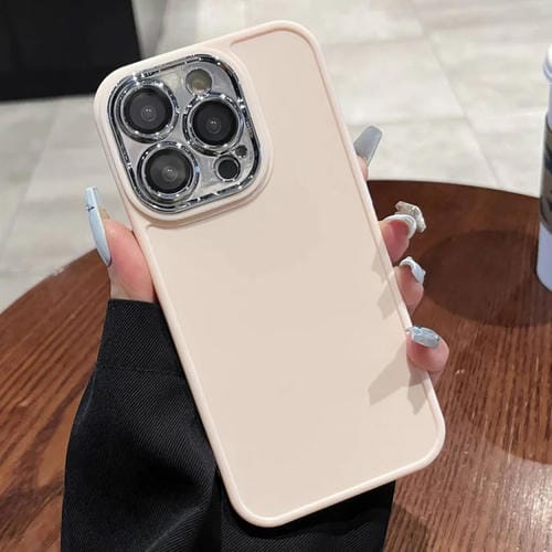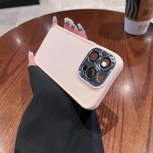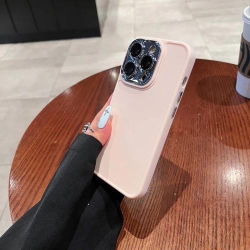 Caja de Teléfono para iPhone 12 Pro Max con Marco de Lente Galvanizada y Película de Lente (Rosa Claro)