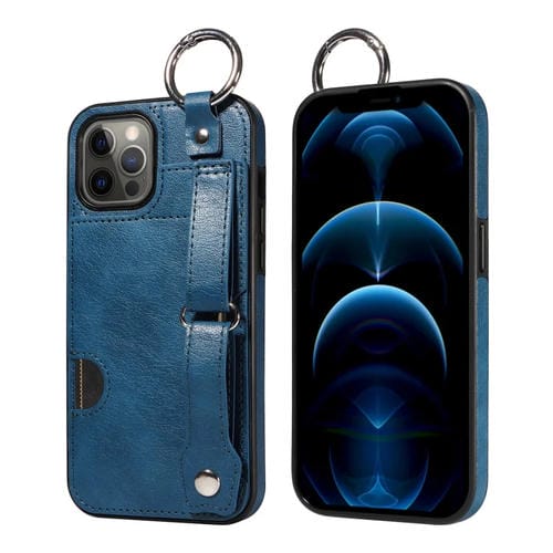 Caja de teléfono para iPhone 12 Pro Max con anillo y ranura para tarjeta con textura de pantorrilla (Azul)