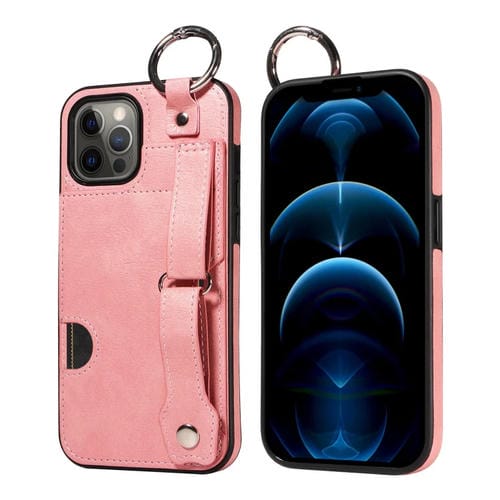 Caja del Teléfono para iPhone 12 Pro Max con Anillo y Ranura para Tarjeta con Textura de Pantorrilla (Rosa)
