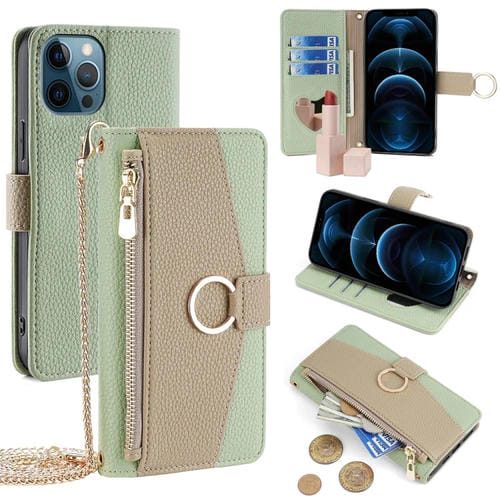 For iPhone 12 Pro Max Crossbody Litchi Texture Leather Phone Case(Green)