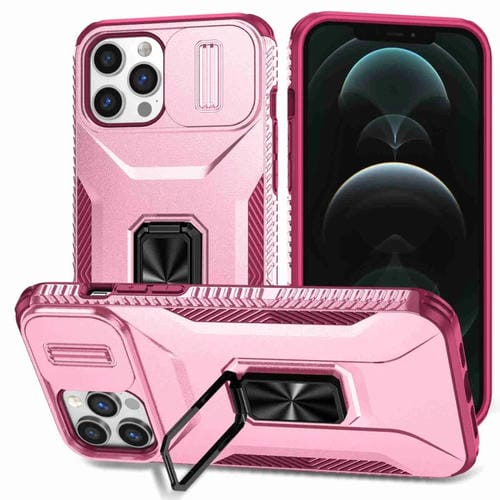 Estuche para Teléfono iPhone 12 Pro Max con Soporte Deslizante para Levas (Rosa + Rojo Rosa)
