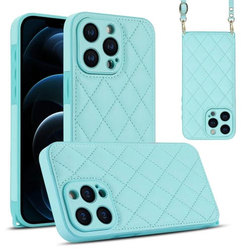Estuche para Teléfono iPhone 12 Pro Max Textura Rómbica Cordón Doble (Verde)