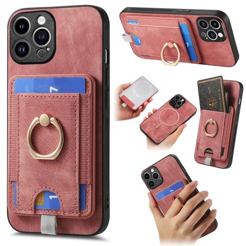 Estuche para Teléfono iPhone 12 Pro Max Cuero con Bolsa para Tarjeta Magnética Divisible Retro (Rosa)