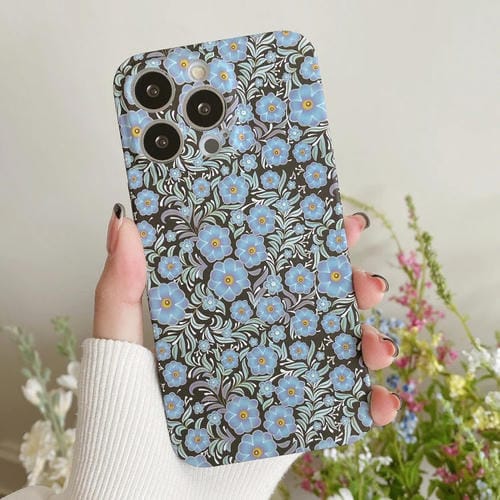 Caja de Teléfono PC para iPhone 12 Pro Max Etiqueta de Agua Patrón de Flores (Flor Azul)