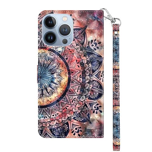 For iPhone 12 Pro Max 3D Painted Leather Phone Case (Colorful Mandala)