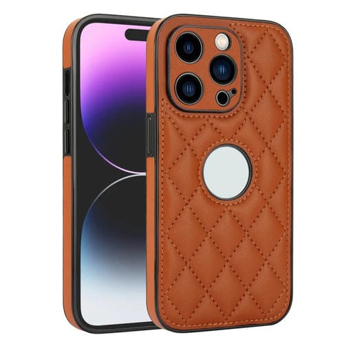Funda para Teléfono iPhone 12 Pro Max Contraportada de Cuero Rómbico (Marrón)