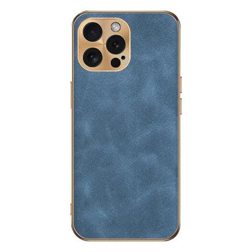 For iPhone 12 Pro Max Electroplated Lambskin Phone Case (Blue)
