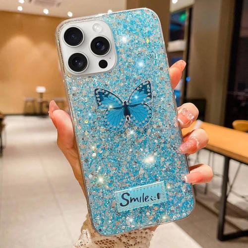 Funda para Teléfono TPU Epoxi iPhone 12 Pro Max con Diamantes y Lentejuelas Estrelladas (Azul)