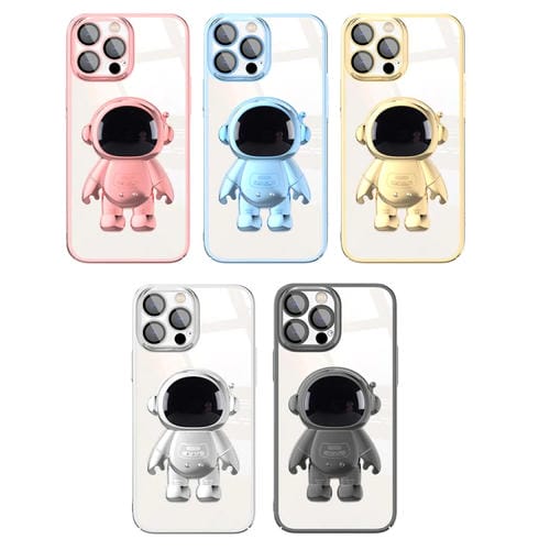 Funda para Teléfono iPhone 12 Pro Max Galvanoplastia PC Astronaut Holder con Película de Lente (Rosa)