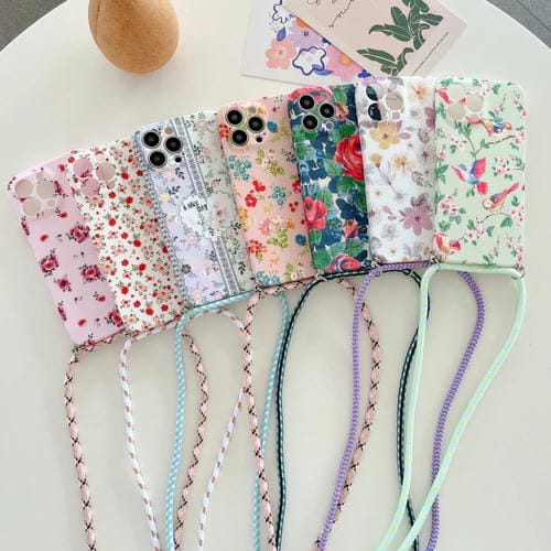 For iPhone 12 Pro Max Lanyard Small Floral TPU Phone Case (Green)