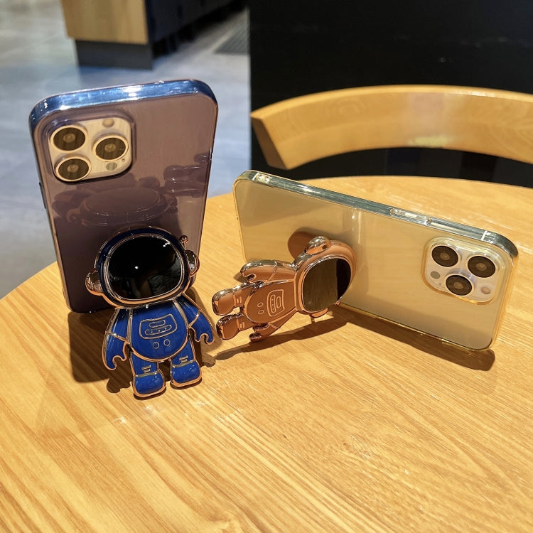 Funda de teléfono TPU Plating Astronaut Holder para iPhone 12 Pro Max (Púrpura)