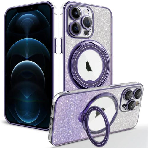 Estuche para Teléfono iPhone 12 Pro Max Rotación Magsafe Holder TPU con Brillo Degradado (Púrpura Noche)