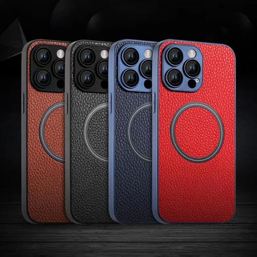 Funda para iPhone 12 Pro Max Skin Feel Litchi Texture Magsafe Magnética (Negro)