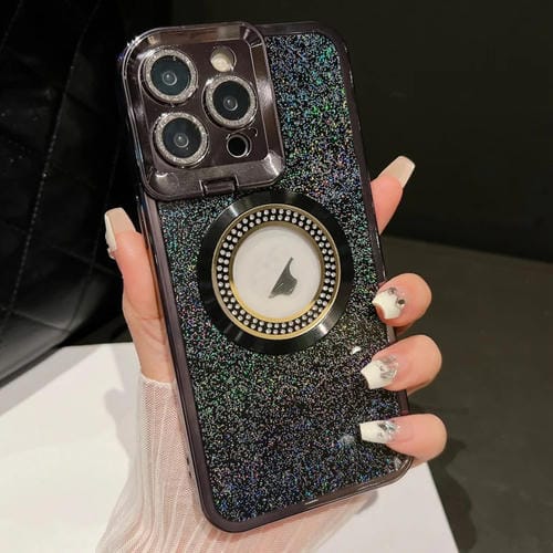 Estuche para Teléfono iPhone 12 Pro Max Starry Glitter Magsafe con Soporte para Lente (Negro)