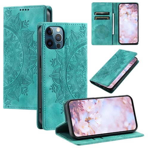 Funda de Cuero Magnética Totem para iPhone 12 Pro Max En Relieve (Verde)