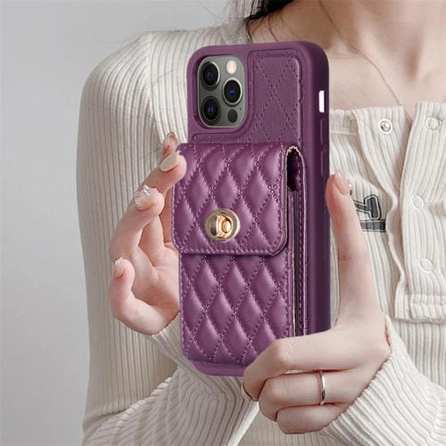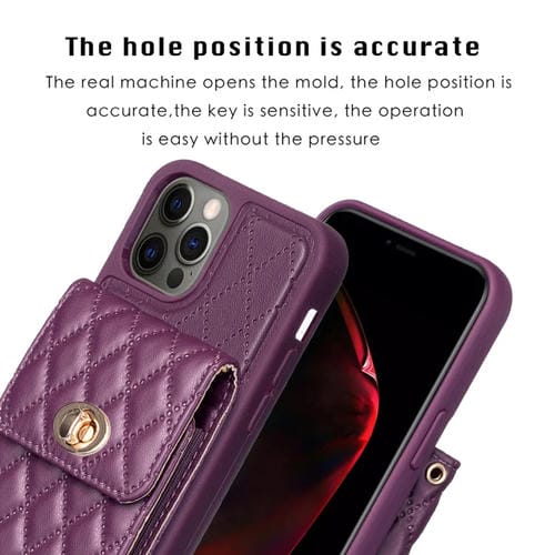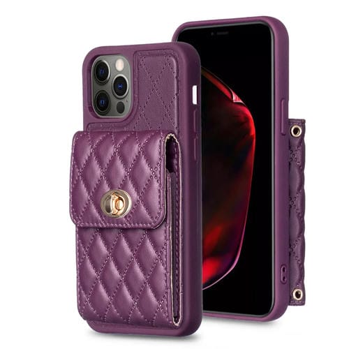 Funda para iPhone 12 Pro Max Hebilla de Metal Vertical Cuero Rómbica (Morado Oscuro)