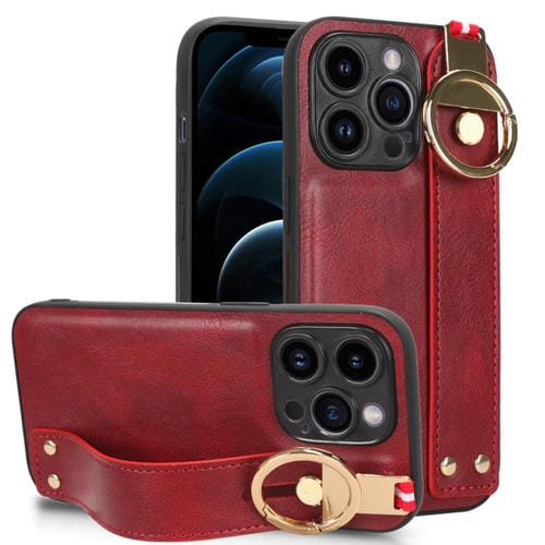 Funda para iPhone 12 Pro Max Wristband Leather Back Phone Case (Rojo)