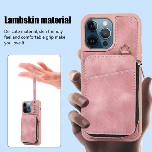 Funda para Teléfono iPhone 12 Pro Max Zipper Card Bag Contraportada (Rosa)