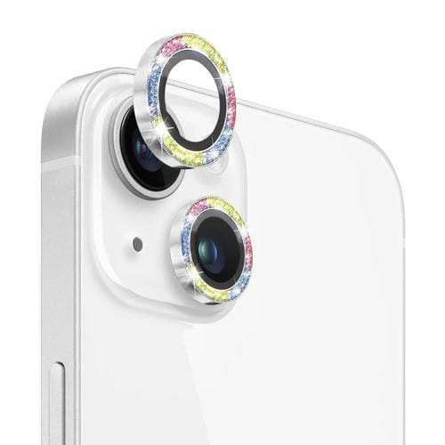 Lente de Cámara Northjo para iPhone 13/13 Mini Vidrio Templado Bling Glitter Película Anillo de Metal (Colorido)