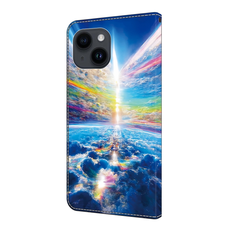 Funda de Cuero para iPhone 13/14 con Cristales Pintada (Cielo Colorido)