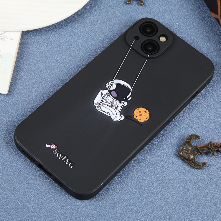 Funda para iPhone 13 TPU Astronaut Swinging Pattern (Negro)